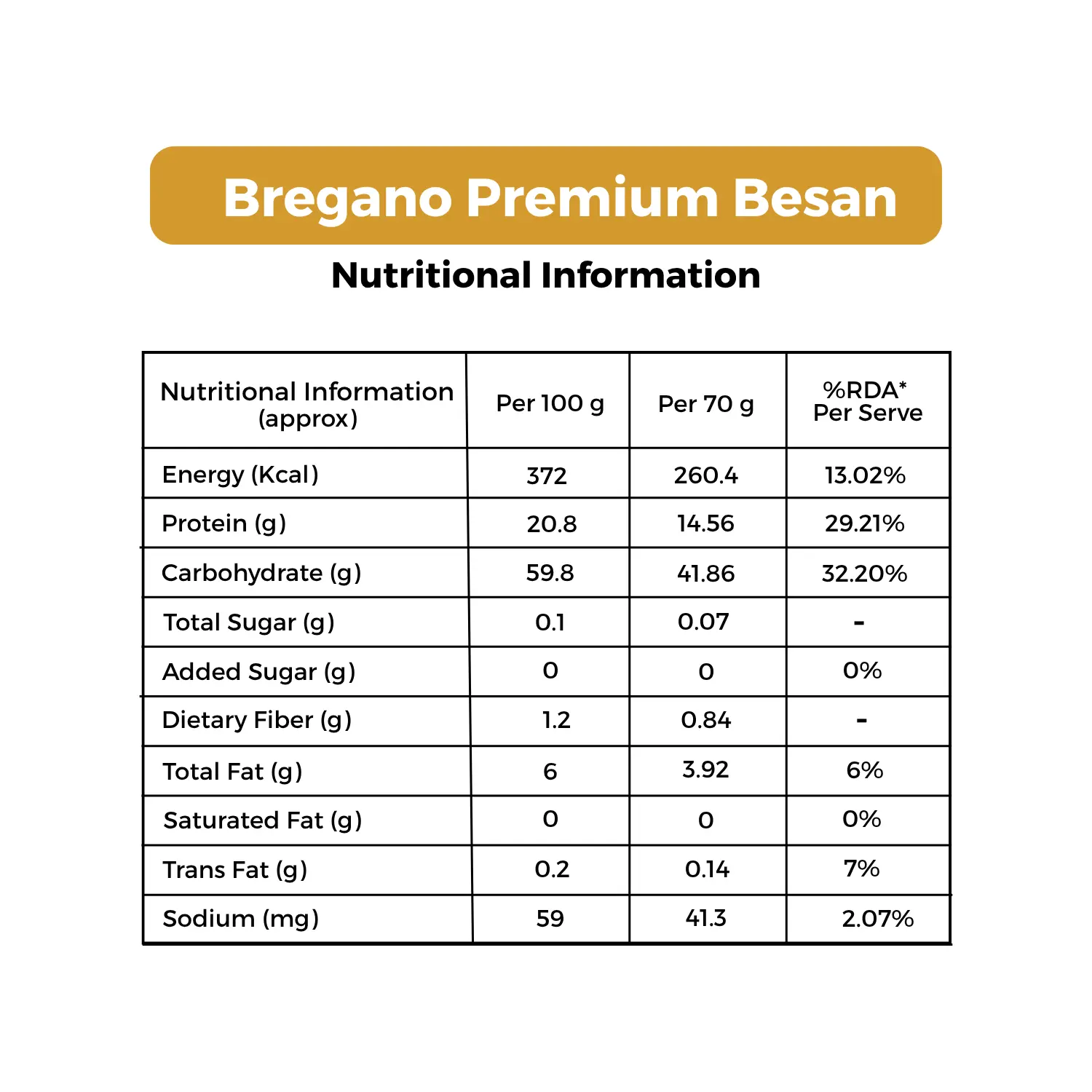 Made from 100% pure desi chana dal, Bregano Premium Besan is gluten-free and rich in protein, thiamine, and vitamin B6. Its low glycaemic index makes it ideal for diabetics. Whether it’s dhokla, pakora, or namkeen, enjoy purity and performance in every bite—with a flour that’s as nutritious as it is flavourful.