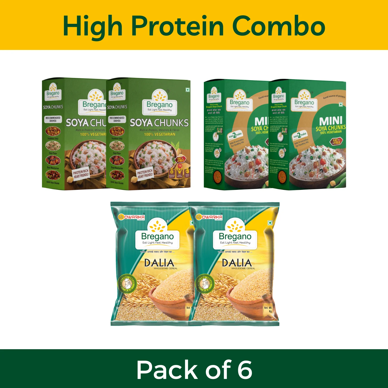 Fuel your day with the Bregano High Protein Combo, packed with soya chunks, mini soya chunks, and wholesome dalia. This combo offers a powerful protein boost, ideal for muscle repair, energy, and satiety.