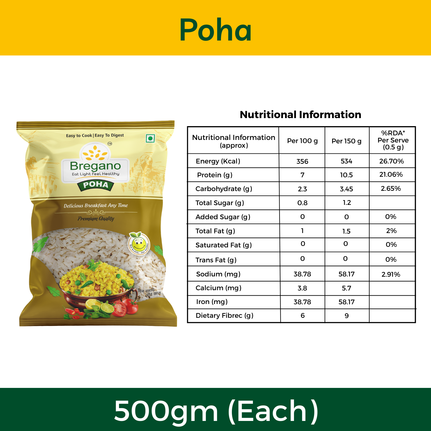 Bregano Poha – 500g | Pack of 2 (₹120)