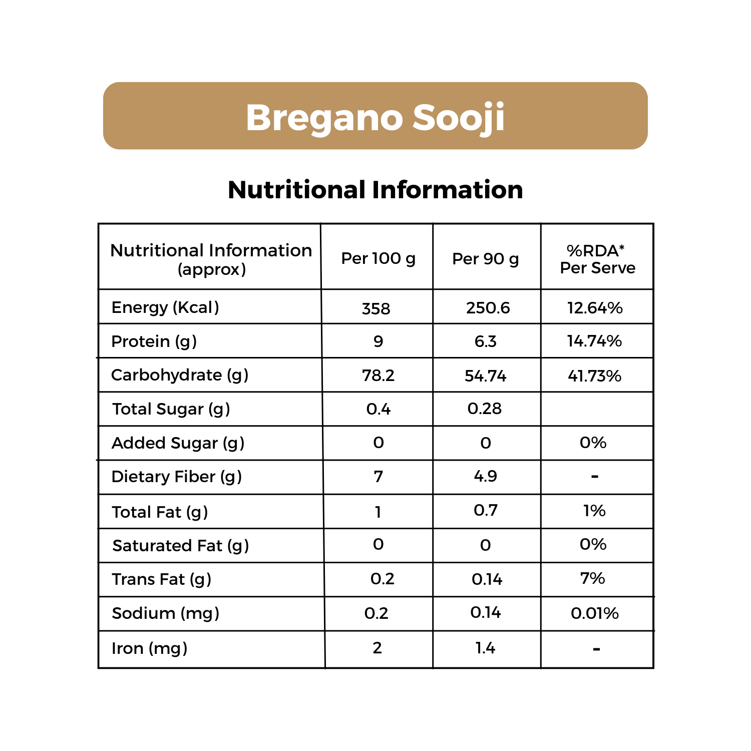 Free from preservatives and additives, it brings out the natural flavour of your recipes. Whether you're making halwa, laddoo, upma, or idlis, Bregano Sooji gives great results every time.